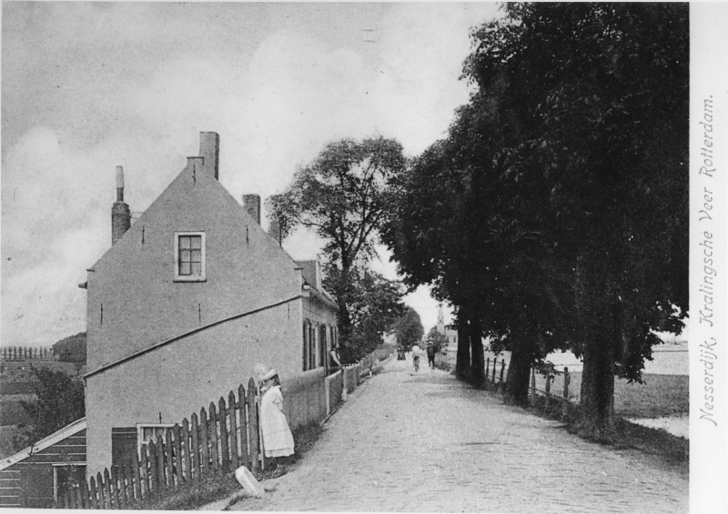 Gezicht op de Nesserdijk, uit westelijke richting. Prentbriefkaart 1898-1902. Stadsarchief Rotterdam