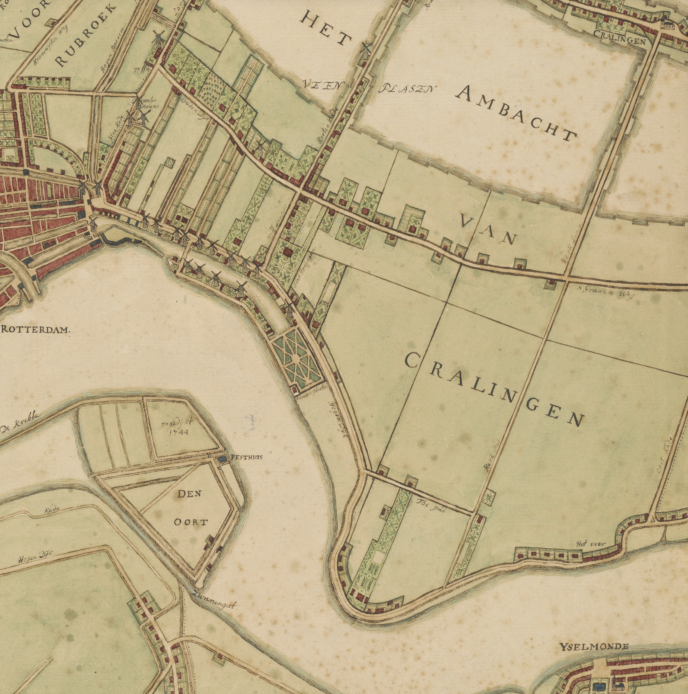 Kaart van Rotterdam en omliggende landerijen (1784)
